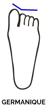 La forme germanique est celle qui a le gros orteil plus long que les autres orteils. Cependant, à la différence de l’égyptien, les autres orteils ne décroissent pas, mais ont tous la même longueur. Les personnes ayant la forme germanique sont très rationnelles.