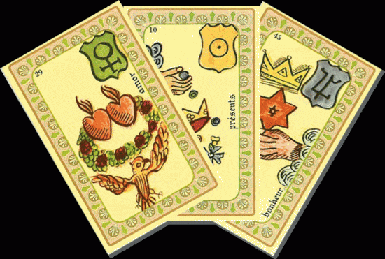 L’oracle de Belline est un mélange des lames du Tarot de Marseille et de celles du premier de jeu d’Etteilla.